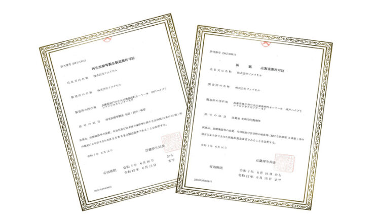 ファイセルの長年の夢であった医薬品製造業許可・再生医療等製品製造業許可を、2025年6月16日、2つ同時に取得しました。 ハード面・ソフト面の整備も...